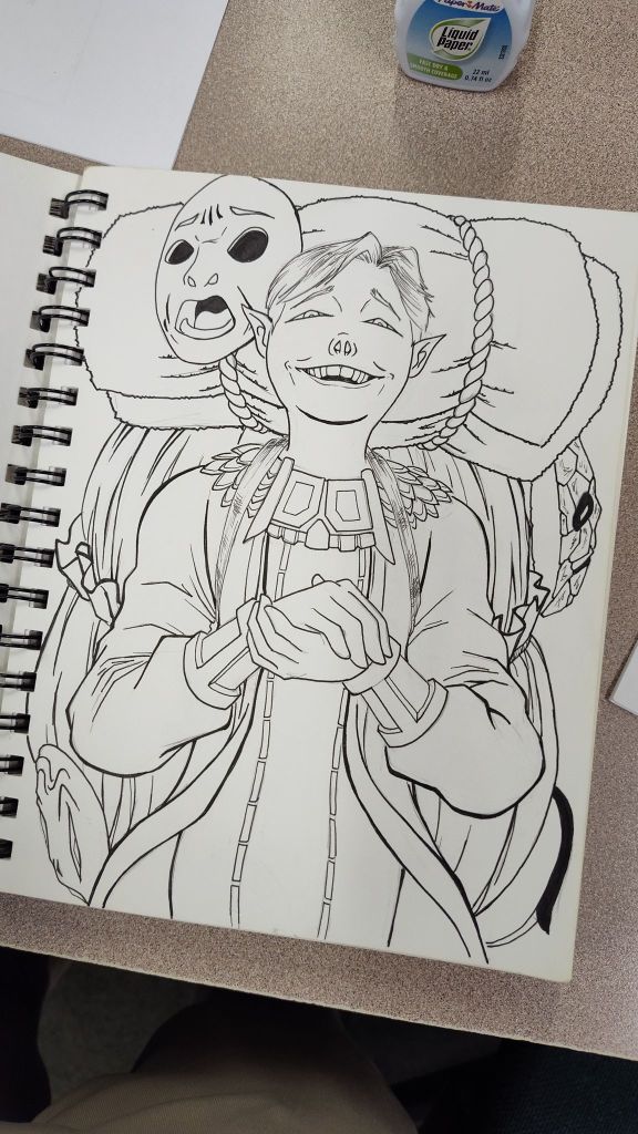 The difference in these two projects and Project SPIRIT is pre-establishment. These are a course and an event that had a predetermined set of steps to fulfill. I took liberties with INKTOBER deciding on drawing original characters and trademark characters that inspired their creation. Inktober typically provides single, daily word prompts for each day of October to draw.